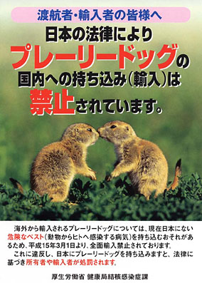 なお、我が国では、平成15年3月より、外国からのプレーリードッグの輸入は、感染症法に基づき、禁止されています。