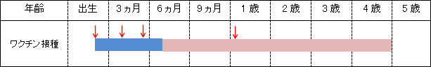 初回接種:生後2か月から接種を開始し、およそ1か月おきに3回接種します。
