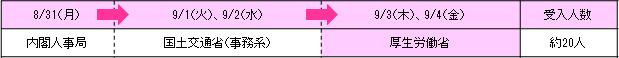 厚生労働省は、内閣人事局及び国土交通省(事務系)と同じグループに所属し、5日間の日程で実施します(その内、厚生労働省は2日間)。