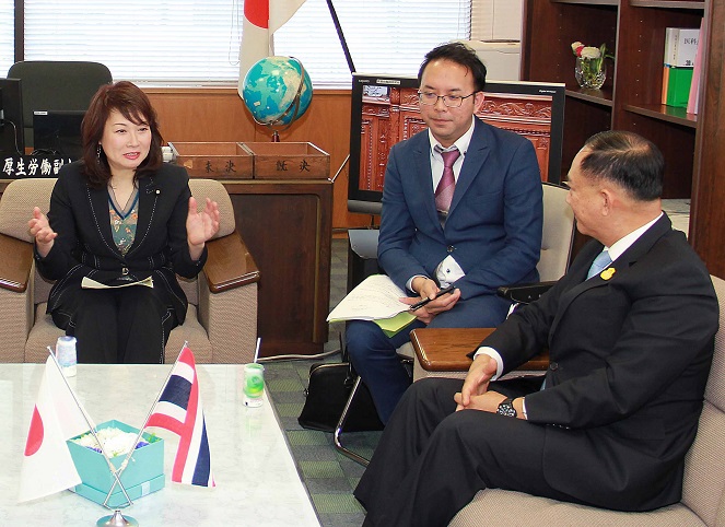 髙階厚生労働副大臣は「日本国法務省・外務省・厚生労働省とタイ王国労働省との間の技能実習に関する協力覚書」の署名式に出席するため来日したセーンシンゲーウ タイ王国労働大臣を出迎えました。