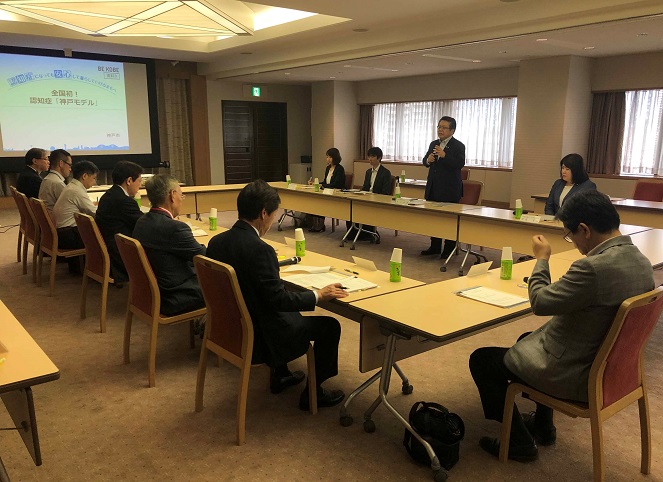 認知症に対する取り組みを行っている神戸市役所では、認知症の診断助成制度と事故救済制度を組み合わせた認知症「神戸モデル」などについて、お話しを伺い、意見交換を行いました。