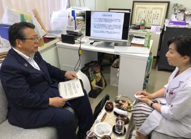 大口厚生労働副大臣は、オンライン診療(※)に取り組む瀬川記念小児神経学クリニックを視察しました。