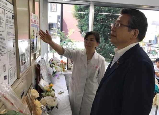 瀬川記念小児神経学クリニックについて説明を聞く大口厚生労働副大臣
