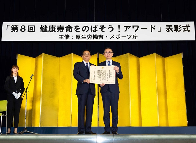 厚生労働省は、スポーツ庁と共に、健康増進・生活習慣病予防推進に役立つ優れた取り組みを行っている企業、団体、自治体を表彰する「健康寿命をのばそう!アワード表彰式」を行いました。