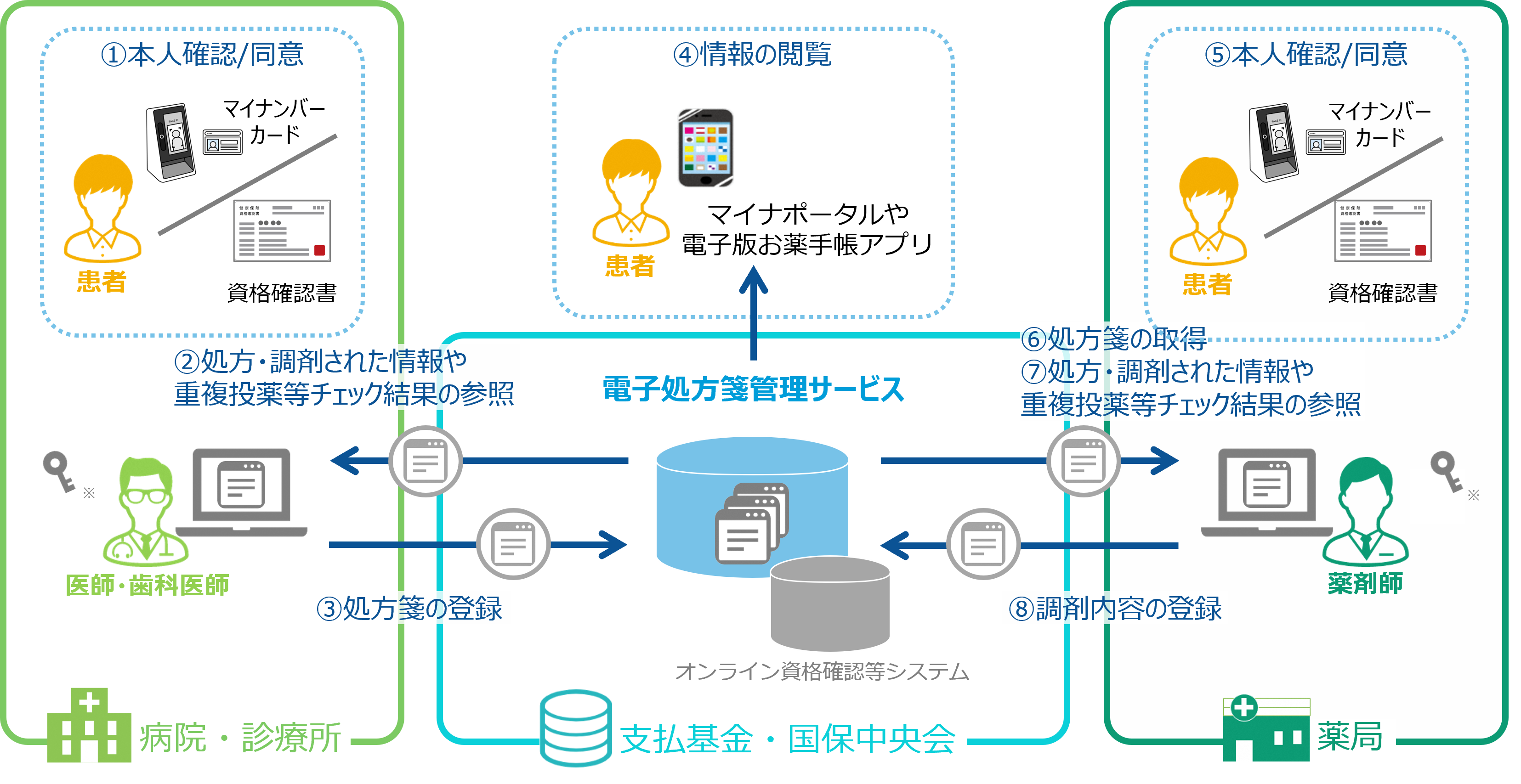 院内処方等情報が登録されると、院内処方を行う病院・診療所でも、電子処方箋管理サービスに登録された情報を参照できるようになったり、院内処方等の情報ももとに重複投薬等チェックが可能になります。