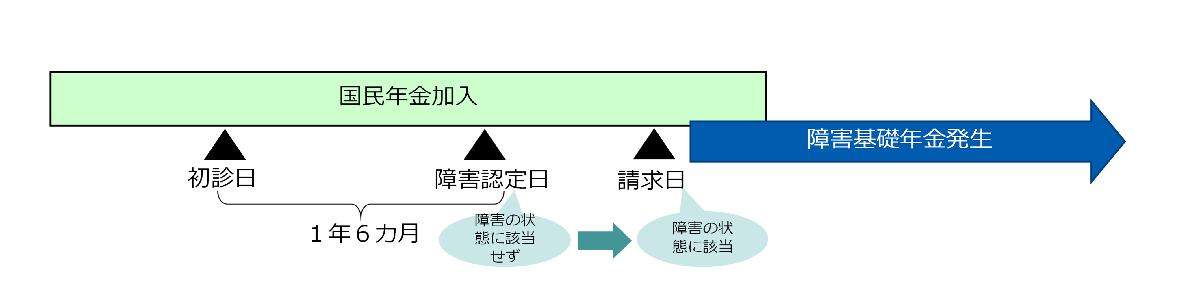 障害認定日において障害等級表に定める障害の状態に該当しなかった人でも、その後症状が悪化し、障害等級表に定める障害の状態になったときには請求日の翌月から障害基礎年金を受給できる。これは、障害認定日に障害の状態にないために障害年金を受給できないという事態を避けるべく、昭和41(1966)年の国民年金法改正で支給対象となる障害の範囲がすべての障害に拡大されたことに伴い設けられたものである。