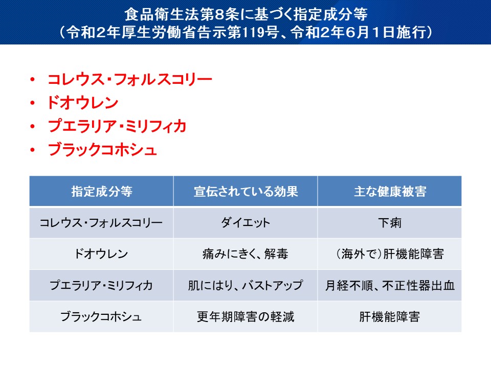 指定成分等含有食品との関連が疑われる健康被害情報について