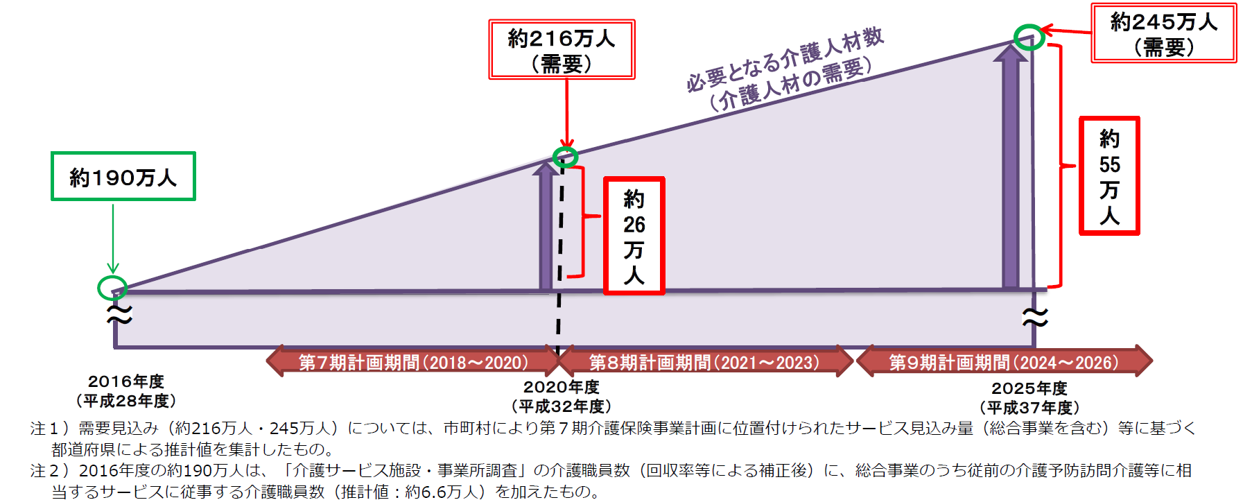 (「第7期介護保険事業計画に基づく介護人材の必要数について(平成30年5月21日)」別紙1より)
