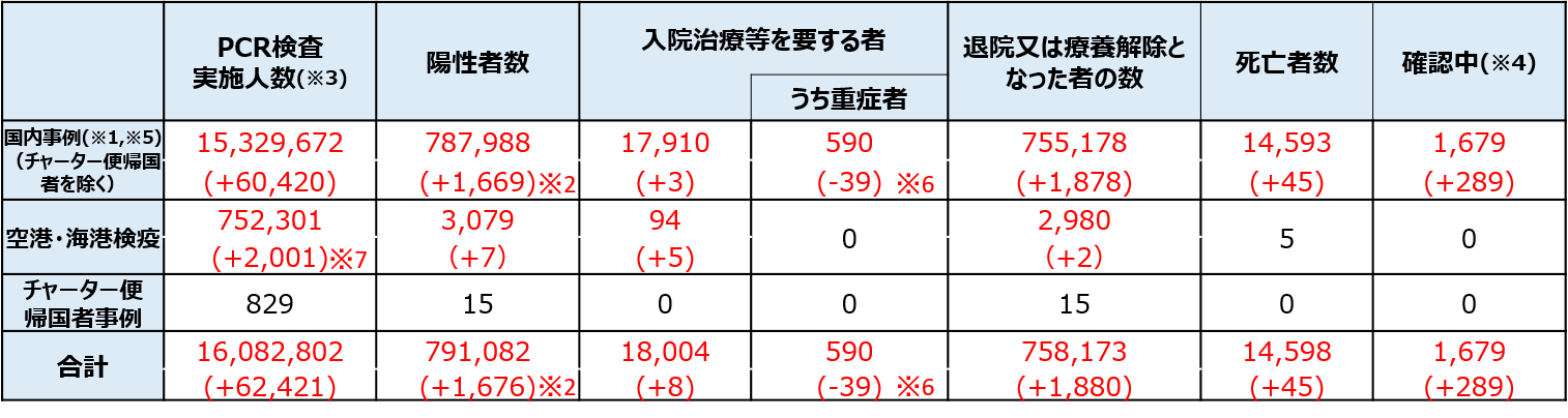 ※7:令和2年7月29日から順次、抗原定量検査を実施しているため、同検査の件数を含む。なお、空港・海港検疫の検査実施人数等については、公表日の前日の0時時点で計上している。