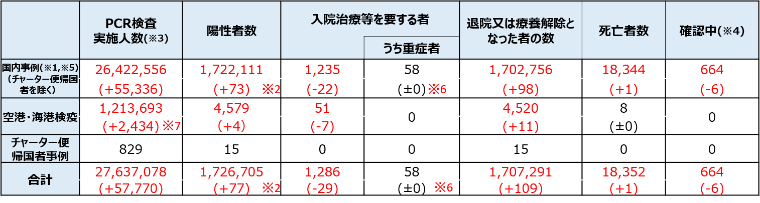 ※2:新規陽性者数は、各自治体がプレスリリースしている個別の事例数(再陽性例を含む)を積み上げて算出したものであり、前日の総数からの増減とは異なる場合がある。