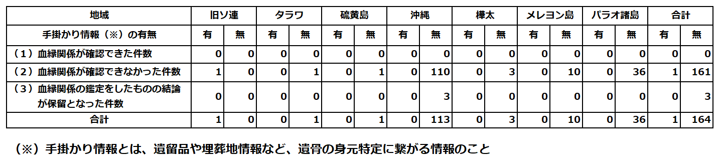 ○ 血縁関係が確認できたものが0件。血縁関係が確認できなかったものが162件。結論を保留したものが3件。