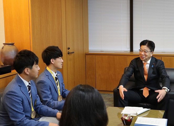 技能五輪国際大会金メダリストによる表敬を受ける加藤厚生労働大臣
