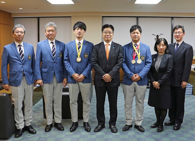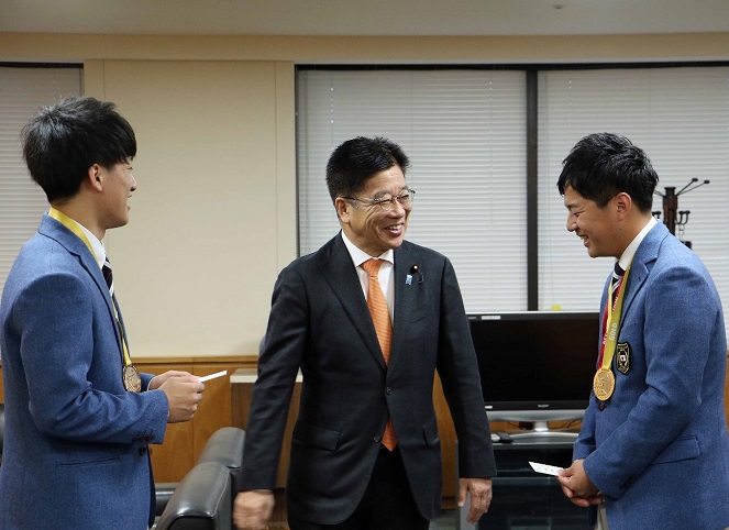 技能五輪国際大会金メダリストによる表敬