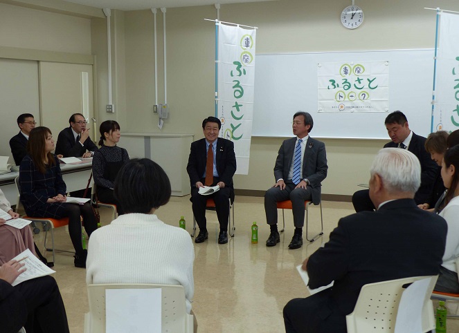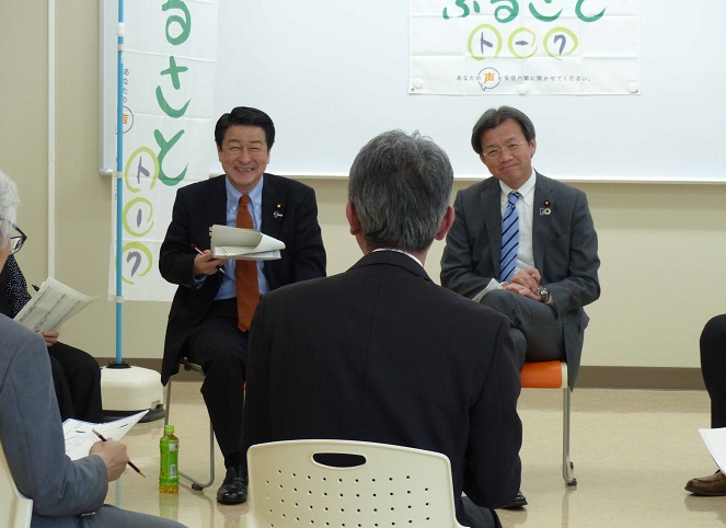 車座ふるさとトークin北海道旭川市で、意見交換を行う稲津厚生労働副大臣(写真左)