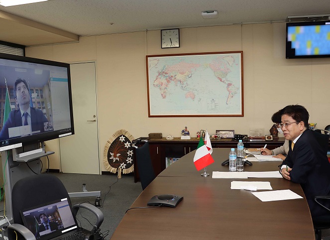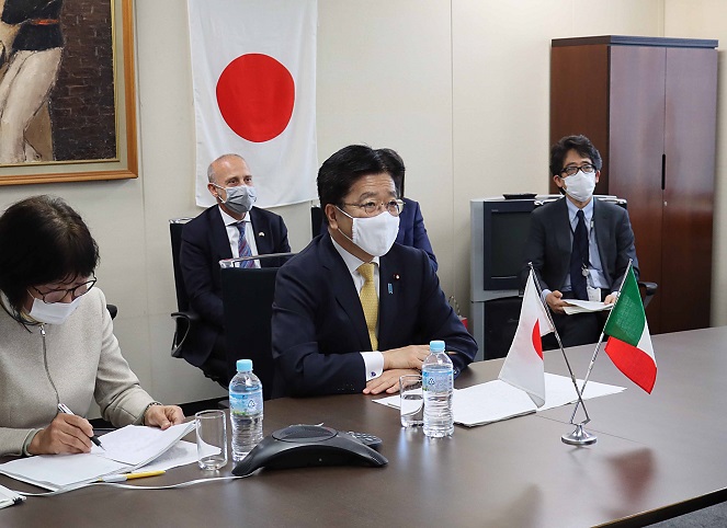 ロベルト・スペランツァ イタリア共和国保健大臣とテレビ会談を行う加藤厚生労働大臣