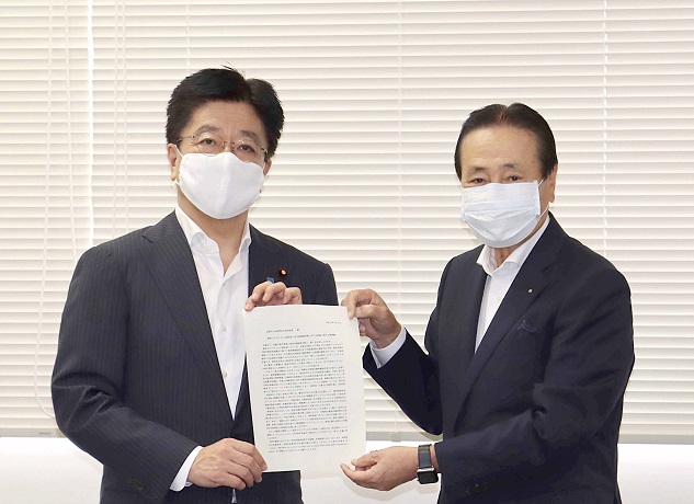 加藤厚生労働大臣は、日本経済団体連合会、日本商工会議所、全国商工会連合会、全国中小企業団体中央会に対し、新型コロナウイルス感染症に関する雇用維持などへの配慮について、要請書を手渡し、11の項目について、協力を求めました。