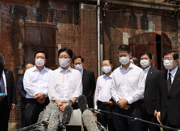 式典後、加藤厚生労働大臣は、被爆建物である「旧広島陸軍被服覆支廠(きゅうひろしまりくぐんひふくししょう)」を視察しました。