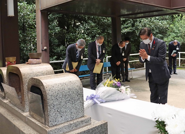 国立療養所多磨全生園の納骨堂で献花をする山本厚生労働副大臣