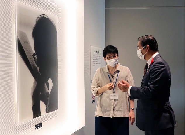 国立ハンセン病資料館で点舌読について話を聞く山本厚生労働副大臣