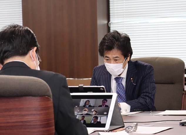 派遣事業者団体に対して派遣労働者の雇用維持などの要請をオンラインで行う田村厚生労働大臣