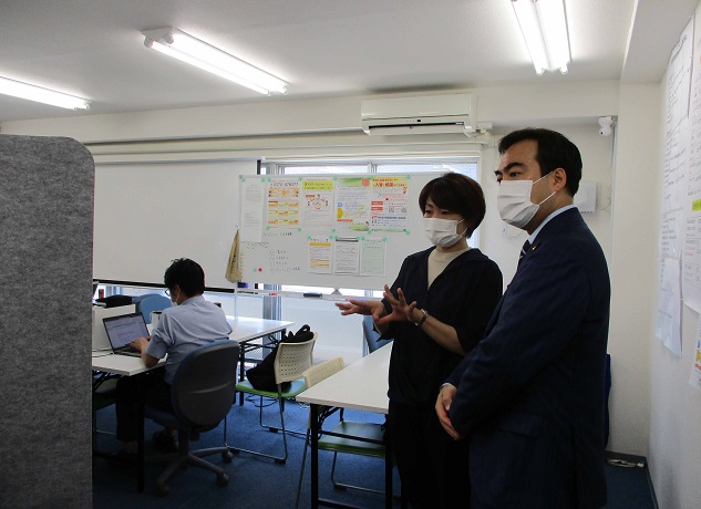 大隈厚生労働大臣政務官は、外国人技能実習生向けの「技能実習SOS・緊急相談専用窓口」(※)の現場を視察しました。