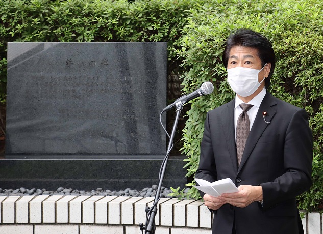 『誓いの碑』の趣旨を改めて心に刻み、私をはじめ、医薬行政に従事する厚生労働省の職員一人ひとりが、その職責の重さを忘れることなく、医薬品の品質、有効性と安全性の確保に最善の努力を重ねてまいります」