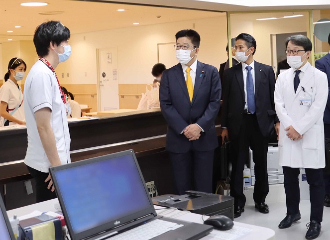 東京都立松沢病院の精神科救急病棟を視察する加藤厚生労働大臣