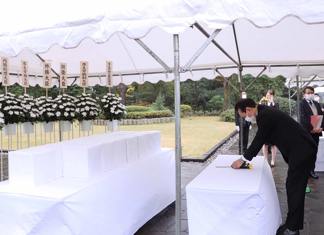 今後とも、多くのご遺骨を一日でも早くお迎えできるよう、防衛省などの関係省庁、日本戦没者遺骨収集推進協会をはじめとした多くの皆さまの一層のご協力をいただきながら、遺骨収集事業に全力を尽くしてまいります」