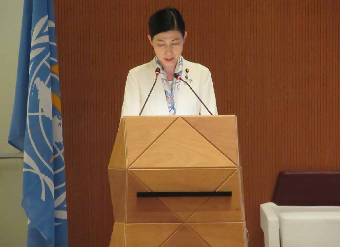 第76回WHO総会で政府代表演説を行う本田厚生労働大臣政務官