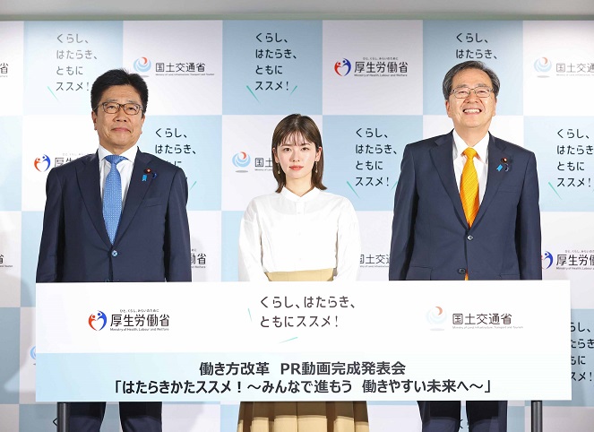 厚生労働省・国土交通省は、働き方改革 PR動画完成発表会「はたらきかたススメ!~みんなで進もう 働きやすい未来へ~」を開催しました。