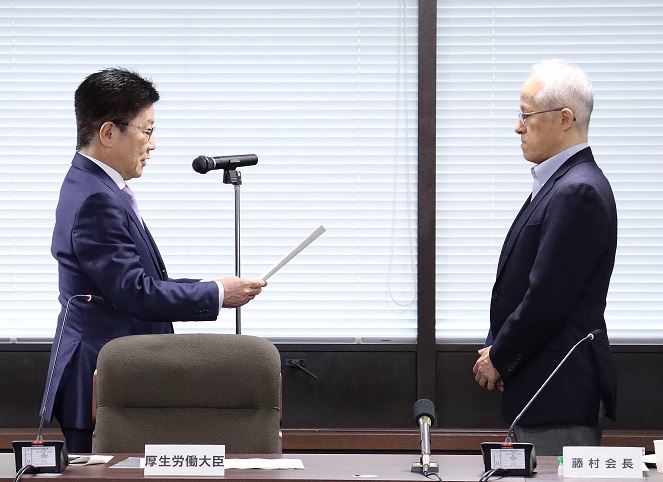 加藤厚生労働大臣は、藤村中央最低賃金審議会会長に令和5年度地域別最低賃金額改定の目安について諮問文を手渡し