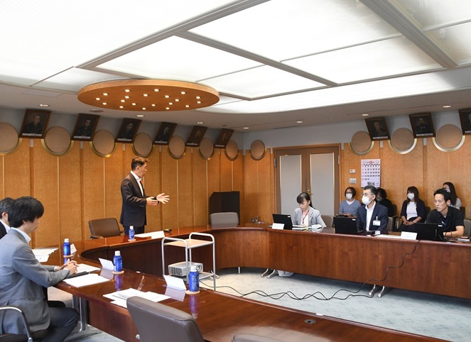 座間市役所では、生活に困っている方に対する断らない相談支援や、就労支援、住まい支援などの取り組みについて説明を受け、事業者も交えて意見交換を行いました。