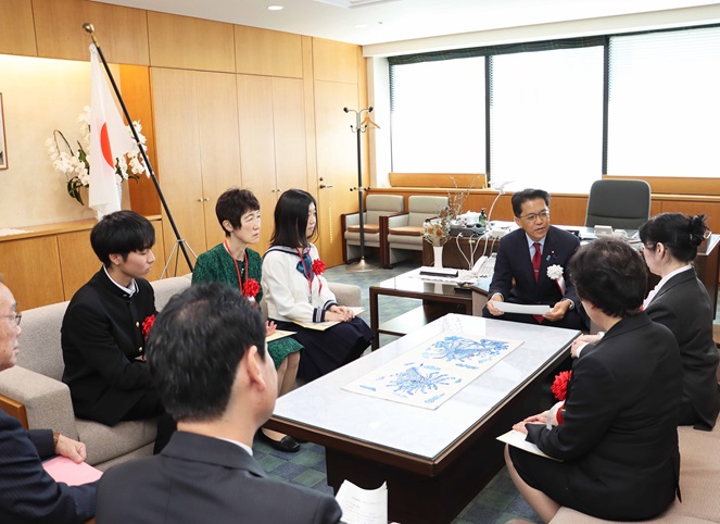 宮﨑厚生労働副大臣は、この表彰式に出席し、厚生労働大臣賞を受賞した小南由花さんに表彰状を授与するとともに、日本年金機構理事長賞と優秀賞の受賞者も交えて歓談を行いました。