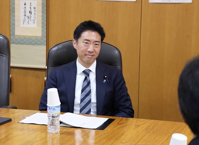 意見に耳を傾ける塩崎厚生労働大臣政務官