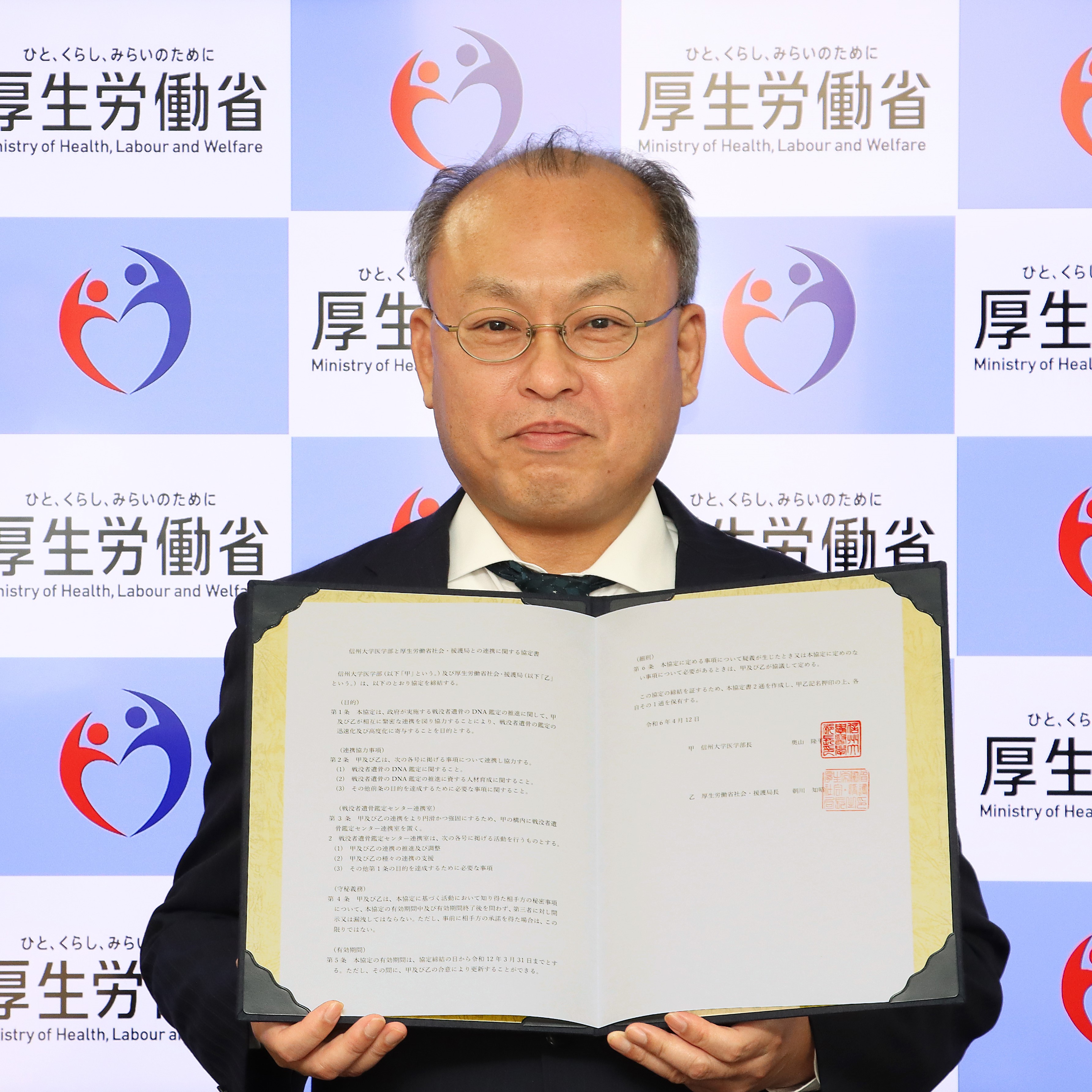 厚生労働省社会・援護局は、戦没者遺骨のDNA鑑定の迅速化及び高度化に寄与することを目的とし、信州大学医学部との間で、「信州大学医学部と厚生労働省社会・援護局との連携に関する協定書」を締結いたしました。