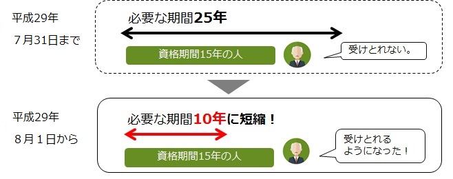 年金年金を受けとるために必要な期間が10年になりました
