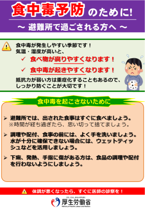 令和6年8月28日 令和6年台風第10号に伴い設置された避難所での食中毒対策について