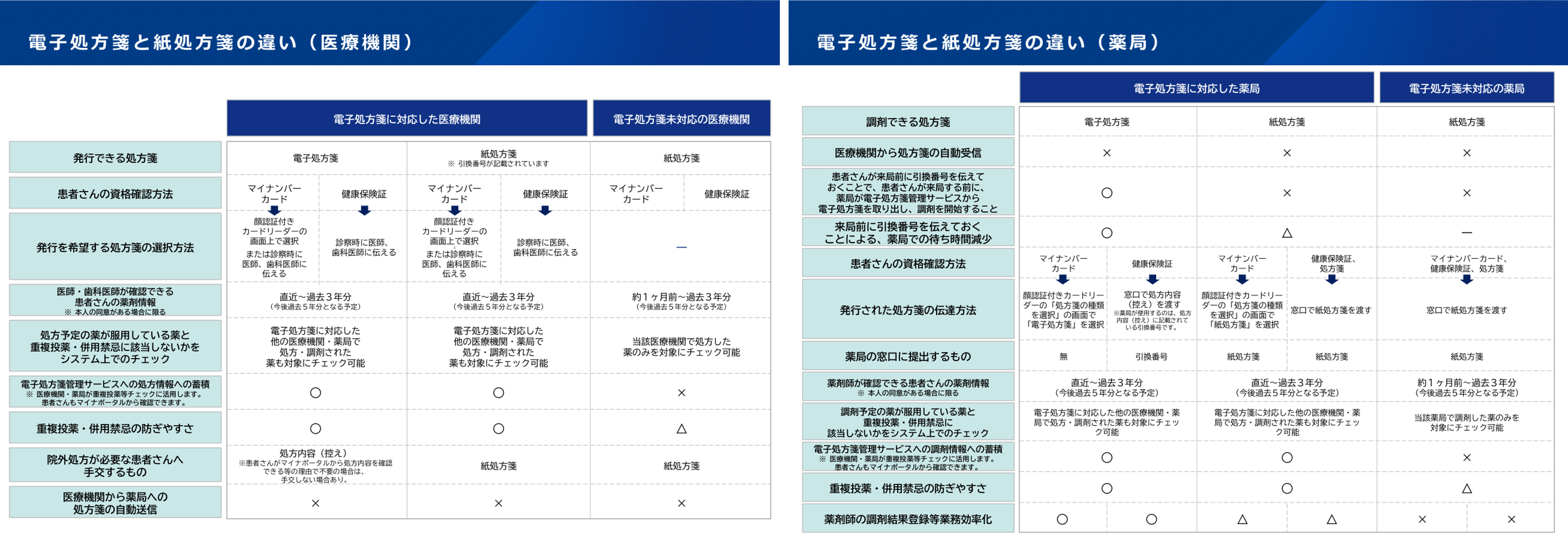 [電子処方せんと紙処方せんの違い]※クリックすると画像が拡大されます。