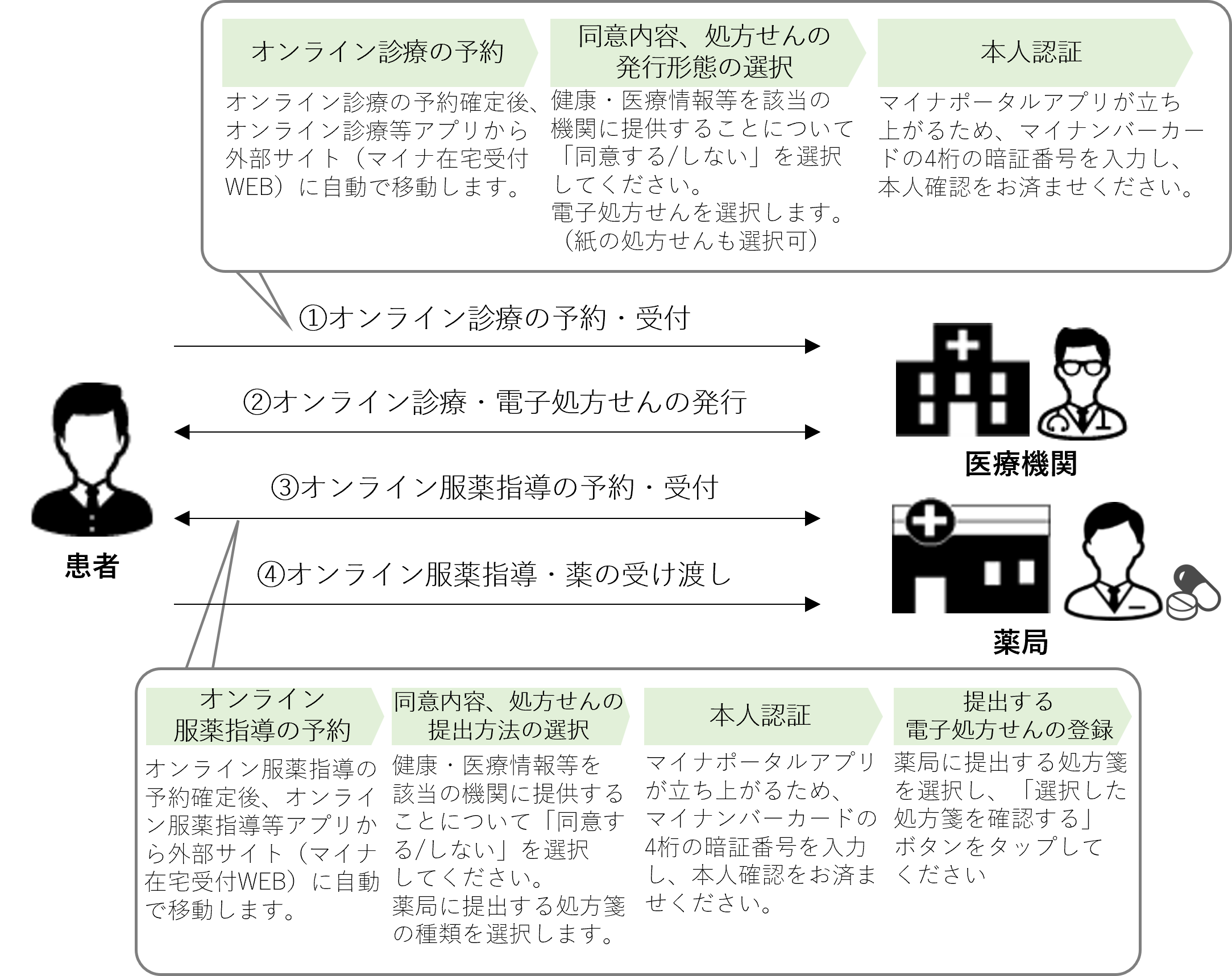 [電子処方せんの利用ステップ]※クリックすると画像が拡大されます
