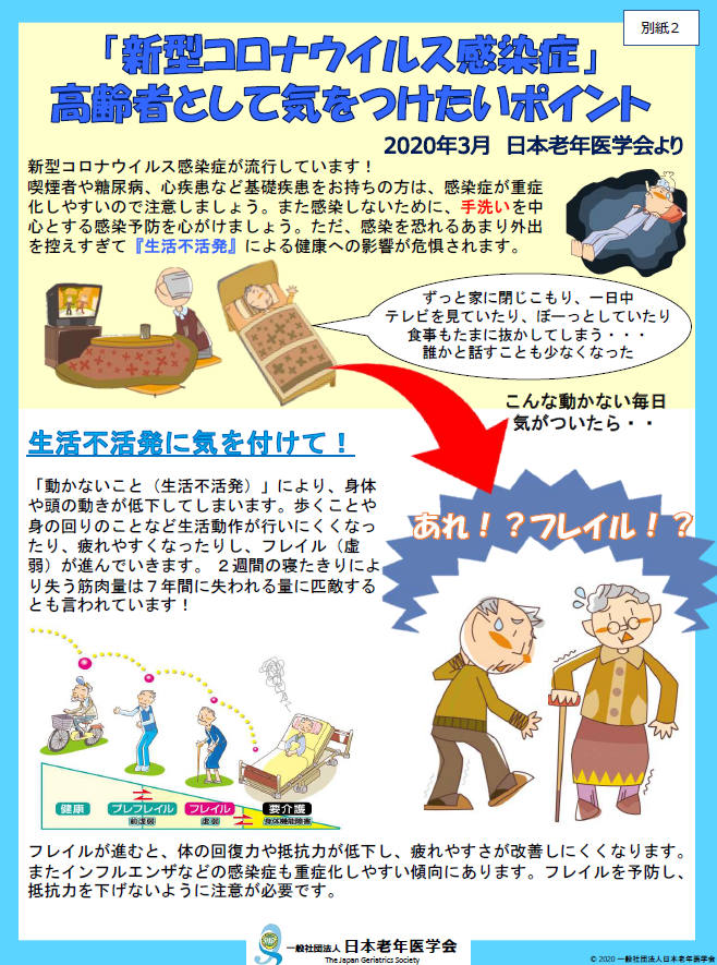 - 高齢者の皆さまへ~新型コロナウイルス予防+元気でいるために~[PDF:564KB]