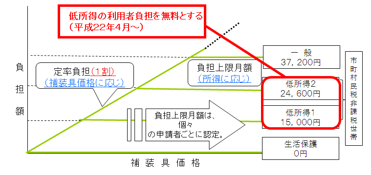 ただし、障害者又はその配偶者のうち市町村民税所得割の最多納税者の納税額が46万円以上の場合には補装具費の支給対象外とする。