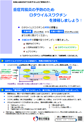 ロタウイルスワクチンについてのリーフレットを作成しておりますので、御活用下さい。