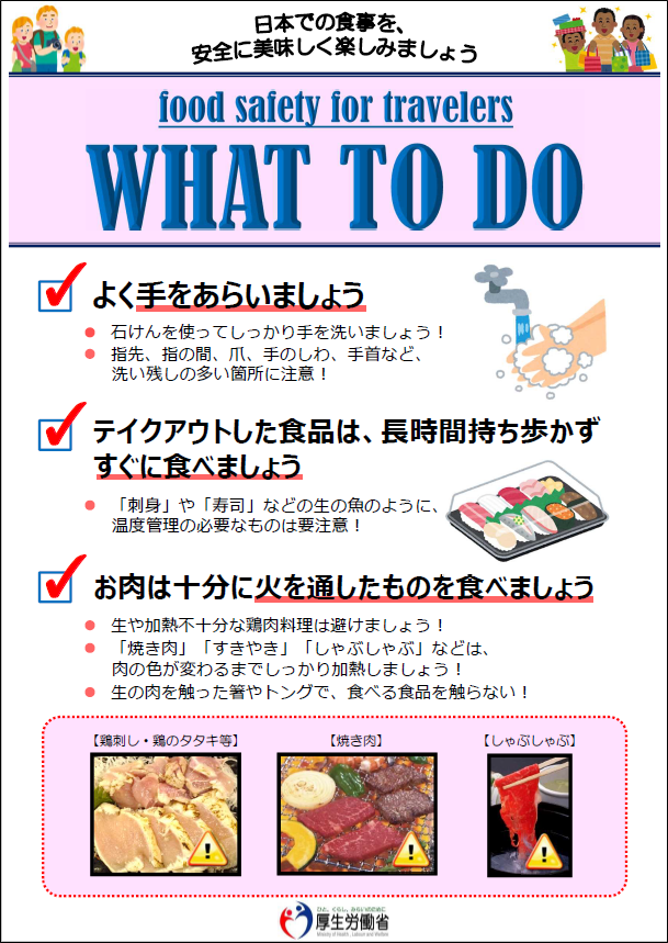 食中毒の発生に関する情報を収集し、これまでの食中毒の発生状況の調査を行っています。また、夏期・年末には、食中毒等の食品による事故の防止を図るとともに、積極的に食品衛生の向上を図る見地から、全国一斉に都道府県等による食品関係事業者等に対する監視指導を強化しています。
