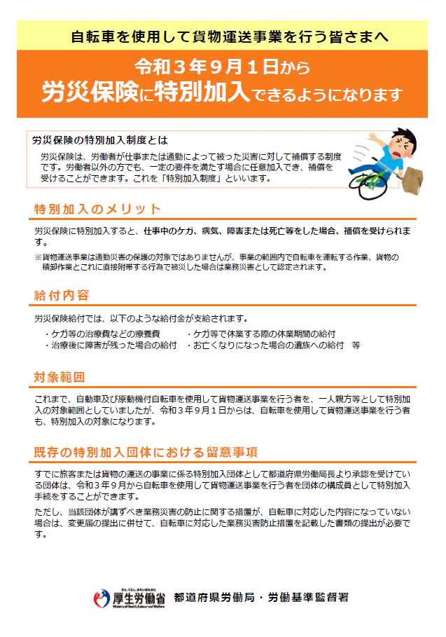 雇用・労働令和3年9月1日から労災保険の「特別加入」の対象が広がりました