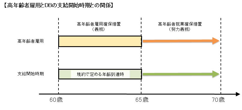 確定給付企業年金(DB)については、一般的な定年年齢を踏まえ、これまでは60歳から65歳の間で労使合意に基づく規約において支給開始時期を設定できました。