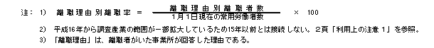 2) 離職には、事業所の閉鎖等に伴う労働者減少を含まない。