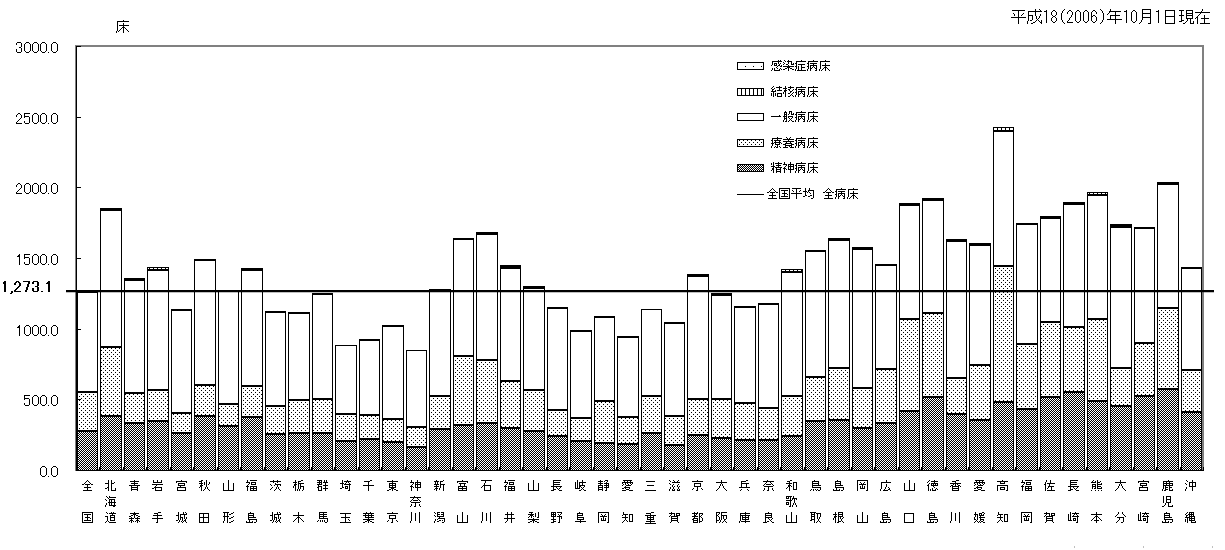 | 全病床 | 精神病床 | 感染症病床 | 結核病床 | 療養病床 | 一般病床 | |||||||